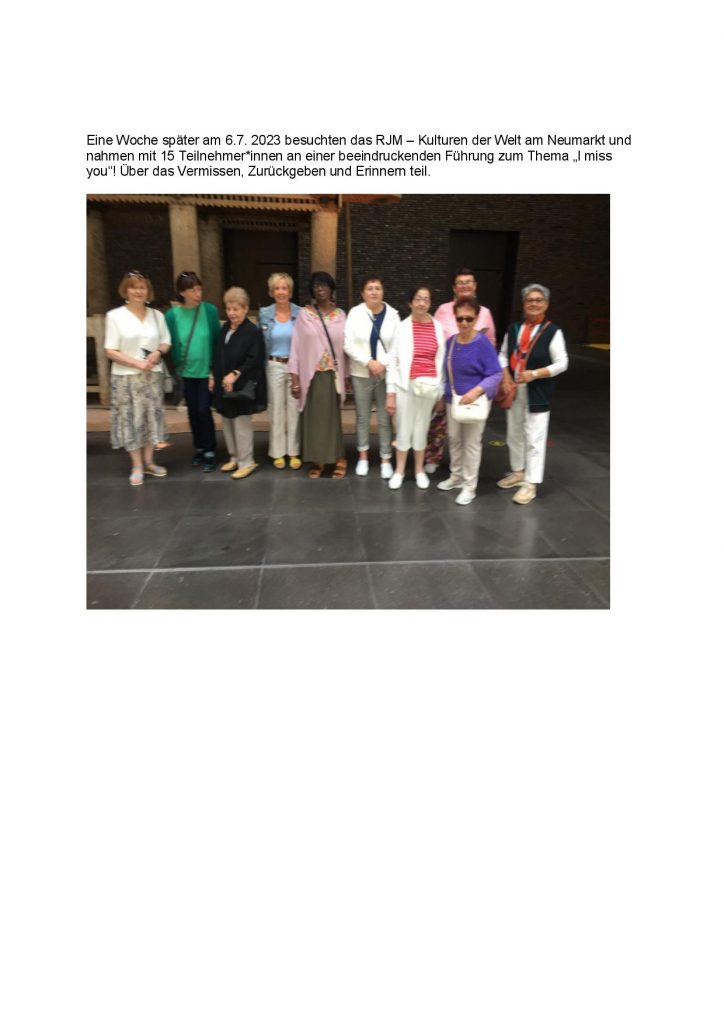 Siebzehn Frauen fuhren ins Frauenmuseum in Bonn, um dort die Ausstellung „Beethoven und die Frauen“ zu besuchen, nach einer wunderbaren Führung durch das Museum hatten wir die Gelegenheit, die Künstlerin Chris Werner kennenzulernen, die uns ihr Kunstwerk vorstellte. Bei Kaffee und Kuchen konnten wir unsere Eindrücke und Gedanken austauschen und den Tag ausklingen lassen.