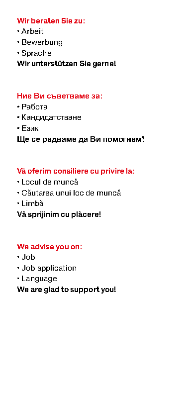 Englisch, Polnisch, Bulgarisch, Rumänisch und Italienisch : WAK Kunden