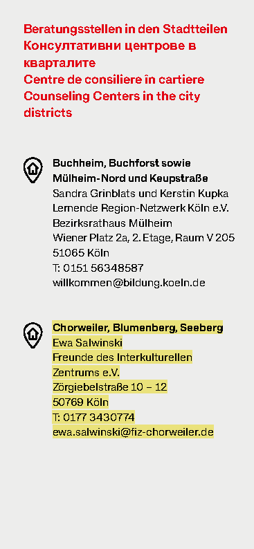 Kooperationspartner sind die Stadt Köln, die Lernende Region – Netzwerk Köln e.V. und der Caritasverband für die Stadt Köln e.V.